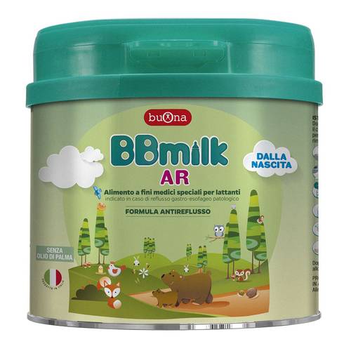 Alimento a fini medici speciali, indicato in modo specifico per il trattamento della patologia accertata del giunto gastro-esofageo. La formulazione di BBmilk AR contiene infatti farina di semi di carrube, un addensante naturale che ne aumenta la viscosità. È un alimento più denso rispetto ad altri latti per l'infanzia e si consiglia una tettarella con fori di dimensioni adeguate. BBmilk AR è adatto all’alimentazione del lattante dalla nascita fino al 12° mese di vita.