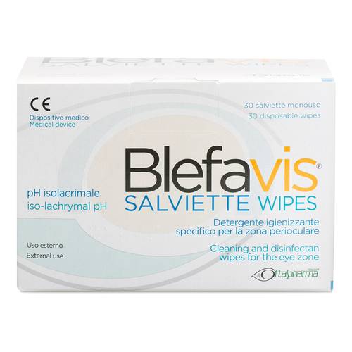 formulazione in gel appositamente studiata per la pulizia quotidiana delle palpebre e ciglia, sensibili e seborroiche. Il prodotto, a base naturale, esplica una azione sia di tipo detergente che emolliente oltre ad una azione normalizzante la carica batterica dovuta alla presenza dell'estratto idroglicerico. Il prodotto consente una detersione delicata accompagnata da un senso di freschezza, oltre ad una normalizzaione della carica batterica, che puà inibire progressivamente il riformarsi delle secrezioni. Blefavis salviette puà essere vantaggiosamente impiegato sia nell'adulto che nel bambino.