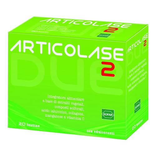 ARTICOLASE 2Descrizione Integratore alimentare appositamente formulato con sostanze ed estratti vegetali come curcuma e artiglio del diavolo utili per la funzionalità articolare con aggiunta di glucosamina, condroitina, collagene di tipo II, MSM e acido ialuronico. Completano la formula la vitamina C che contribuisce alla normale formazione del collagene per la normale funzione di ossa e cartilagini, l'estratto di boswellia che oltre a contribuire alla funzionalità articolare è in grado di contrastare gli stati di tensione localizzati e il manganese utile per la normale formazione di tessuti connettivi e alla protezione delle cellule dall...